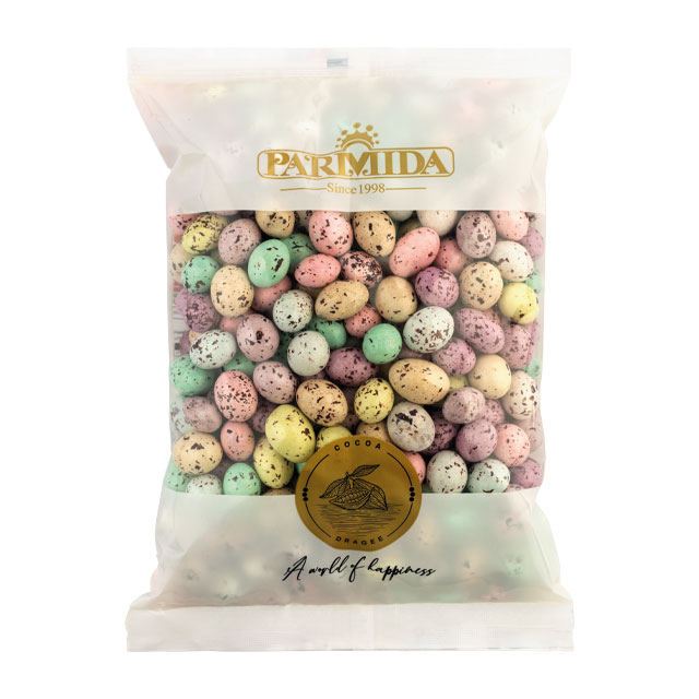 Our Dragees are produced with a wide color range and with Cereal, crispy and sweeten-puffed Wheat Cereal nuts covered with Cocoa.
